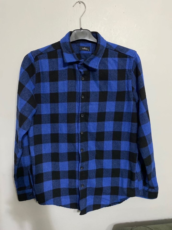 Tudors Mavi Kareli Düğmeli Erkek Gömlek