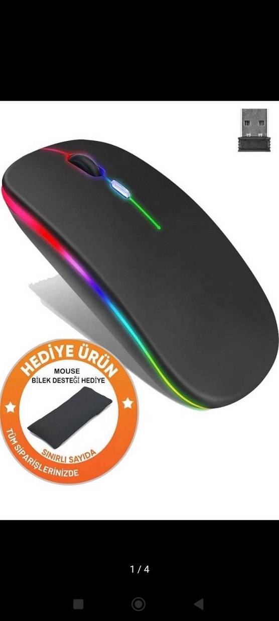 TUF kablosuz mouse, çok renkli RGB, az kullanılmış ve fare altlığı var.