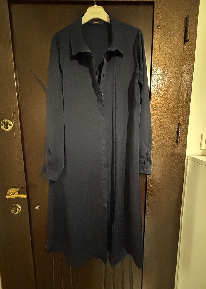 Lacivert Tuğba diz altı gömlek kenarında pilise detaylı
