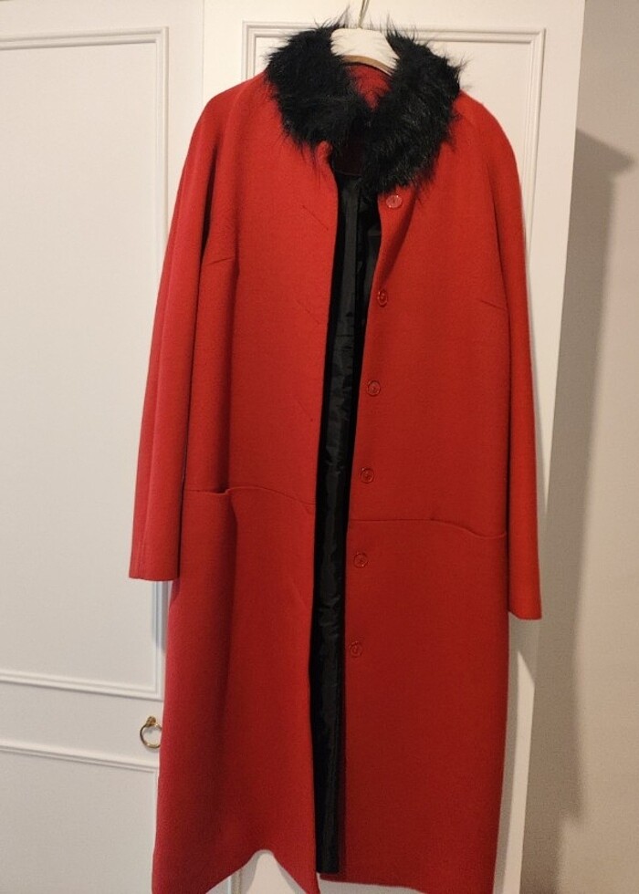 Yakası kürklü 1 kış yarısı giyildi sadece çok temiz.nar çiçeği rengi