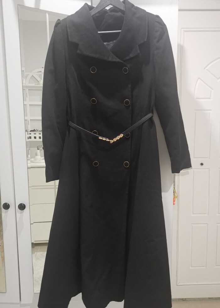 Kaşe kaban Tuğba markasıdır 120cm'dir alt kısmı çan şeklinde dökümlü kruvaze yaka çift düğmeli astarlıdır çok kaliteli bir marka çok severek kullandım bedeni bana artık olmadığı için satıştadır kalıbı rahat 38-42 arası uyar mevcut kemerini göndericem fakat farklı kemerlerlede çok şık yada sporlaştırabilirsiniz