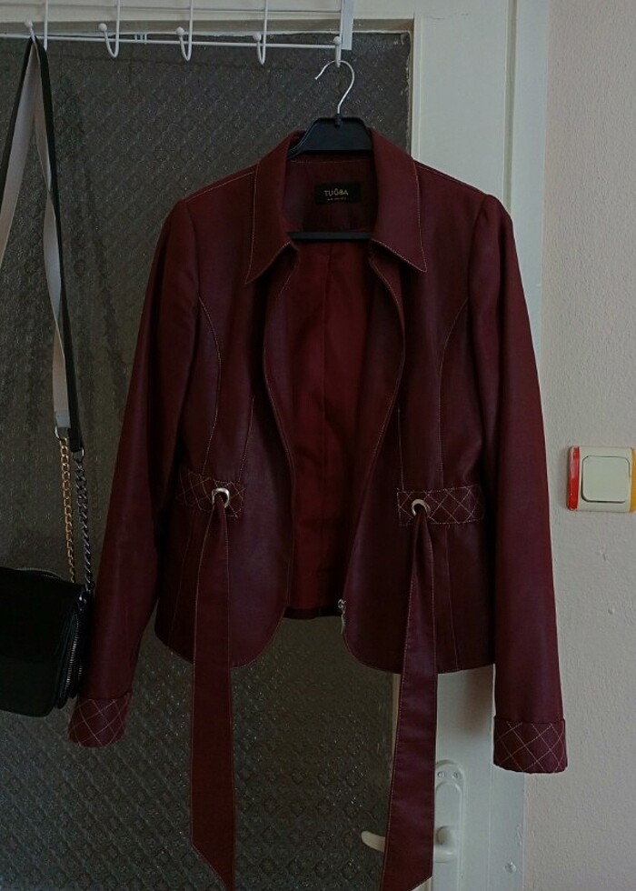Tuğba mürdüm rengi deri ceket