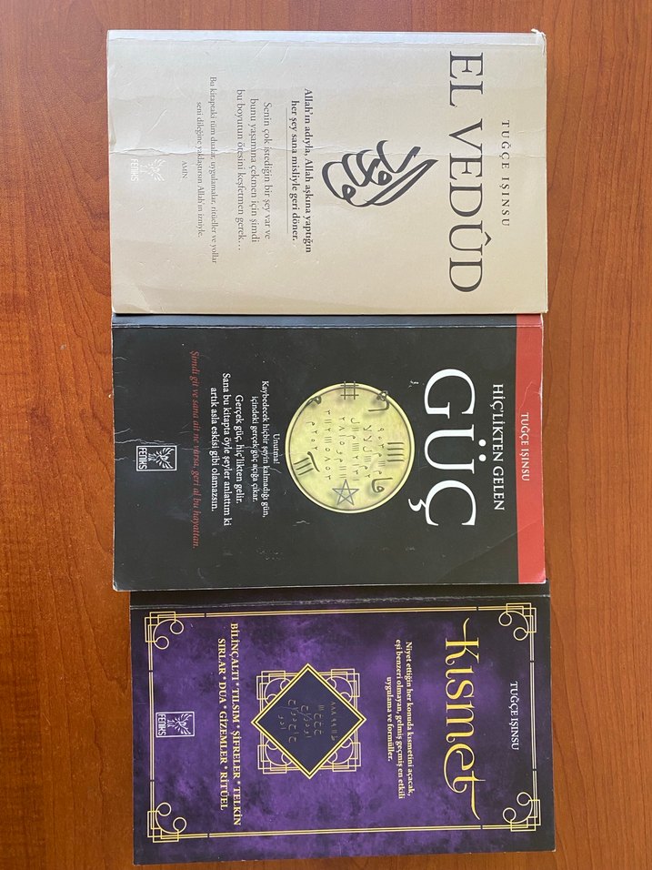Üniversite kitapları olan Tugce Isinsu'nun 'Güç', 'Kısmet' ve 'El Vedud' kitapları çeşitli akademik konuları içerir.