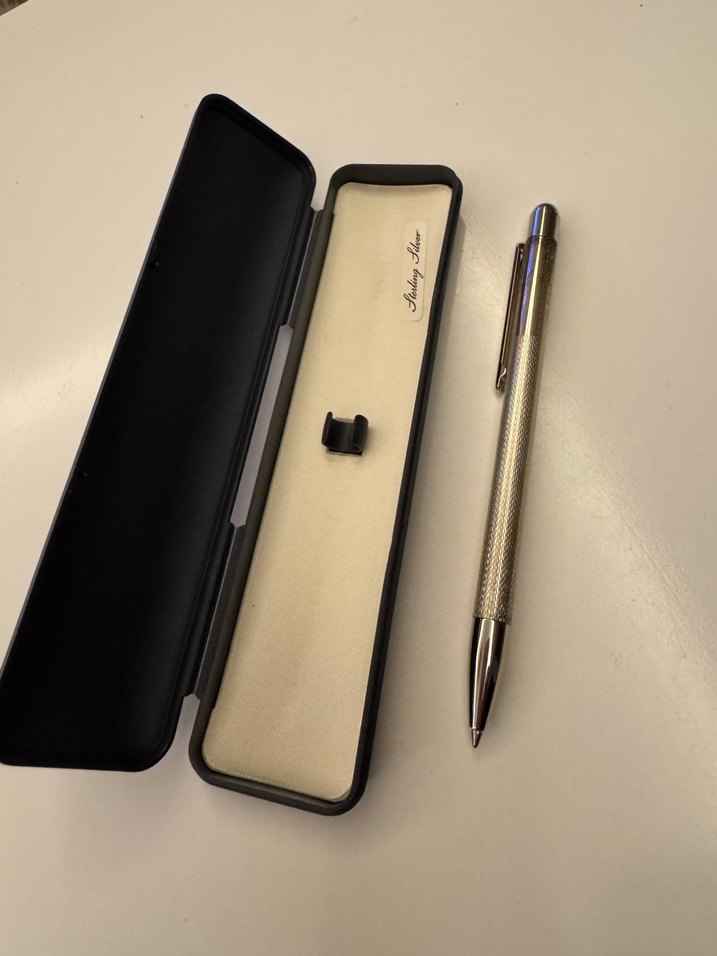 Sterling silver tükenmez kalem gerçek gümüştür..ikinci el üründür.. gümüş olmasından dolayı uç kısmında az bir kararma mevcuttur parlatılabilinir…
