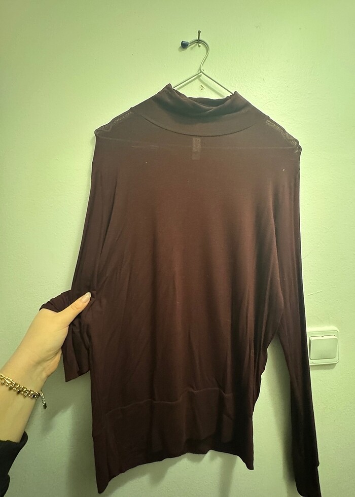 Yumuşacık hafif boğazlı tül bluz. Kolları falan uzun ve rahat. İç gösteriyor büstiyerlerle çok hoş duruyor. Eski ama 1 kez giyildi. Bordo renk