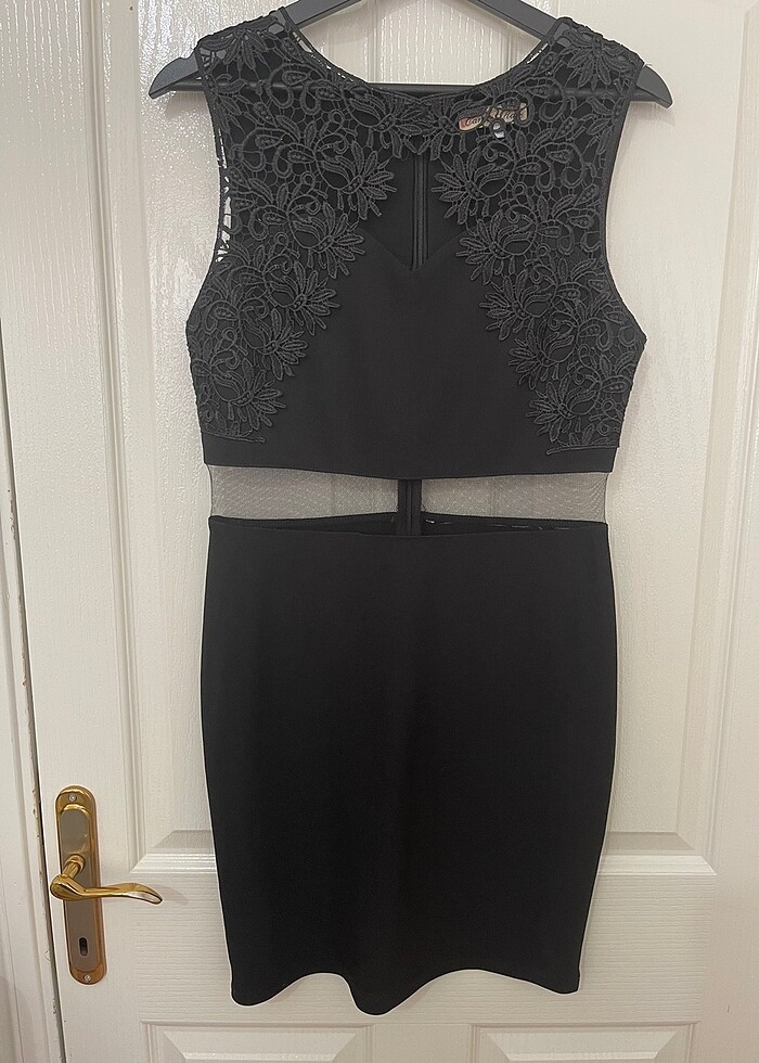 Londra dan alındı göbek kısmı tül detaylı mini balık elbise