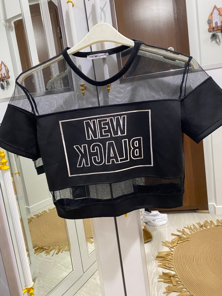 Tül detaylı Crop Bluz