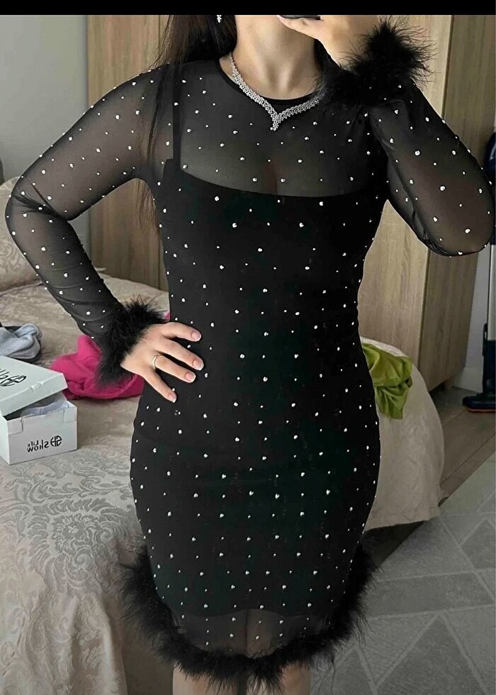SADECE TÜL KISIM Siyah taşlı 1 kere kullandım kurutemizleme yapıldı içindeki elbise satılık değildir sadece tül buna dikkat ederek siparil verin hasarı deformesi yoktur 36 beden