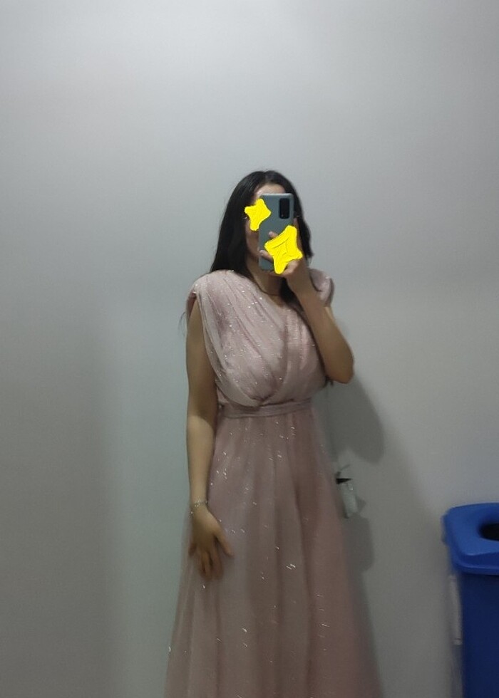Tül prenses gibi hissetiren elbise belden fiyon gibi bağlamalı bir ipi var herkes çok begenmişti fotografta kötü çıkmiş biraz