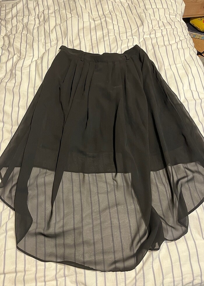 Rodi mood marka 40 beden ancak daraltıldı 36/38 beden ile uyumlu. Siyah renk içinde astarı mevcut. Önü kısa arkası uzun kesim, astarı diz hizasında