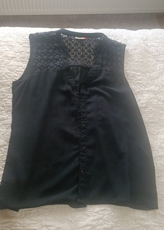 Tül üst kısmı dantel versiyonlu şık gömlek