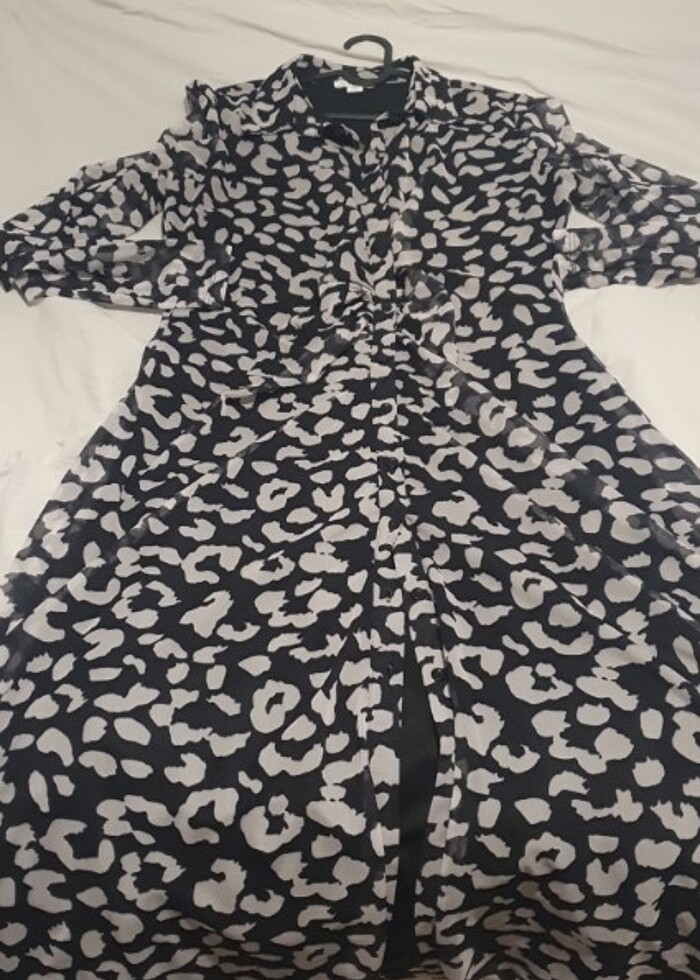 Astarli tül gömlek elbise önden dugmelidir desenli siyah beyaz midi bokydur hayırlı olsun yeni gibidir