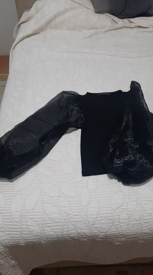 tül Kollu Siyah Bluz
