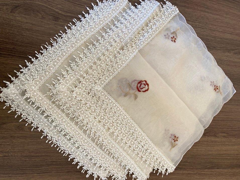 Kenarları güpürlü tül işi oda takımı. 15 adettir. Dilerseniz masa örtüsüde vardır ancak burdaki fiyata dahil değildir. İsterseniz fiyat sorunuz. Kullanıma bağlı 1-2 tanesinde belli olmayan lekeler vardır.
