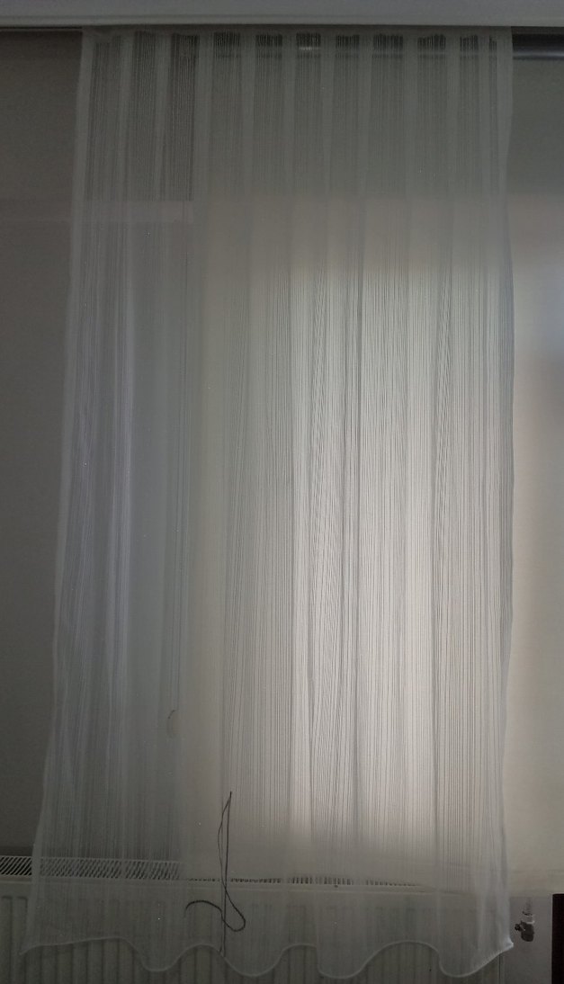 Hiç kullanılmamış tül perde 100 cm en, 210 cm yüksekliktedir Komple fiyatıdır Alt kısmındaki leke yıkayınca çıkar f38
