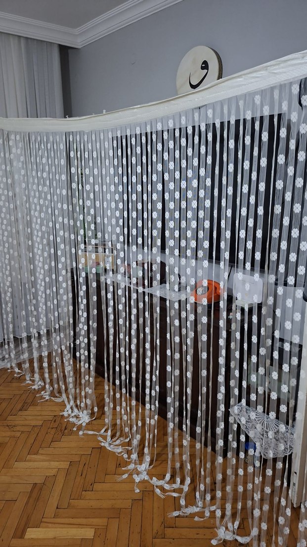 TAVANDAN AŞAĞI 200 CM,ENİ 295 CM DİR.YIRTIK V.S YOK.İHTIYAÇ FAZLASIDIR.