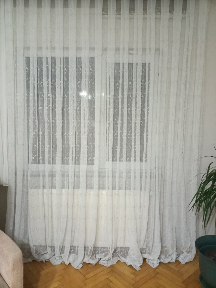 zarif ve çok güzel bir duruşu olan kaliteli ürün.beyaz tül üzerine gri tonunda çiçek desenine sahip.bir kenarından ölçüye göre kesildi bir kenarından boydan dikişsizdir isteyen bu şekilde istenirsede dikipte rahatlıkla kullanılabilir.EN 1.95 CM BOY 2.80 CM