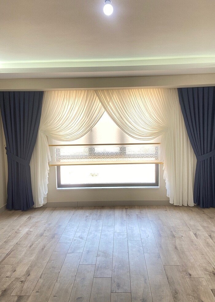Tül perde. Kruvaze tül. Lazer kesim stor ve keten fon perde