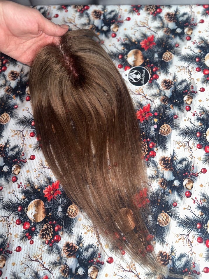 Tül alanı 4 × 8 cm olan saç üstü parça, ek treslerle birlikte toplam alanı 9 × 11 cm’dir. Tül, kendi ayrımınızı doğal şekilde taklit etmenizi sağlar ve çevredekiler tarafından fark edilmez. Parça son derece hafif ve çok konforludur. Tepeden uçlara kadar uzunluğu 39 cm, açıldığında alından uçlara kadar 43 cm’dir. Ürünün ağırlığı 30 gramdır. Renk: soğuk açık kumral, seviye 8. Saç: %100 doğal, katkısız. Boyanabilir, koyulaştırılabilir, 11. seviyeye kadar açılabilir, dalgalandırılabilir, kurutulabilir ve düzleştirilebilir. Sentetik saç karışımı yoktur. Kendi üretimimizdir: @anelia_peruk Hijyenik sebeplerden dolayı ürünlerde iade kabul edilmez; tek kullanımlık kullanımın önlenmesi için bu kural geçerlidir.