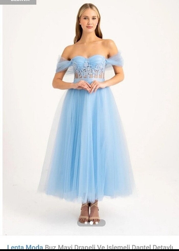 TÜL model işlemeli elbise Mavi boncuklu elbise Etiketli yenidir Bilek boydur Mavi tül elbise 36 beden Boncuklu ön detay Sıfır üründür Lenta Moda marka Trendyoldan alındı