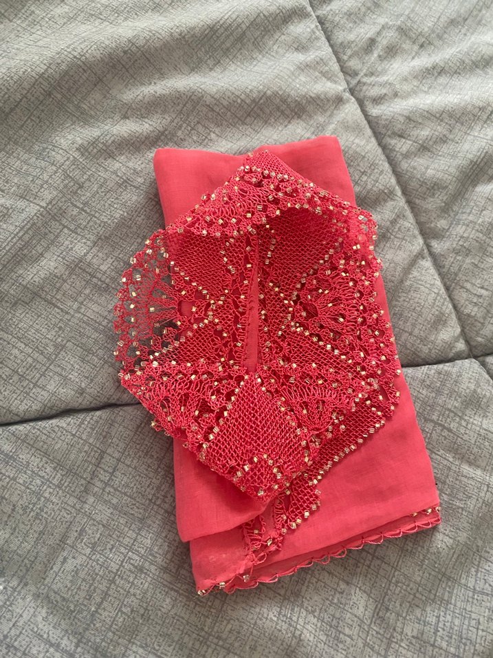 Boncuk işlemeli pembe örme tülbent, bohem tarzıyla rahat ve şık bir görünüm sunar. Moda ve yenilikçi tarzı sevenler için ideal.