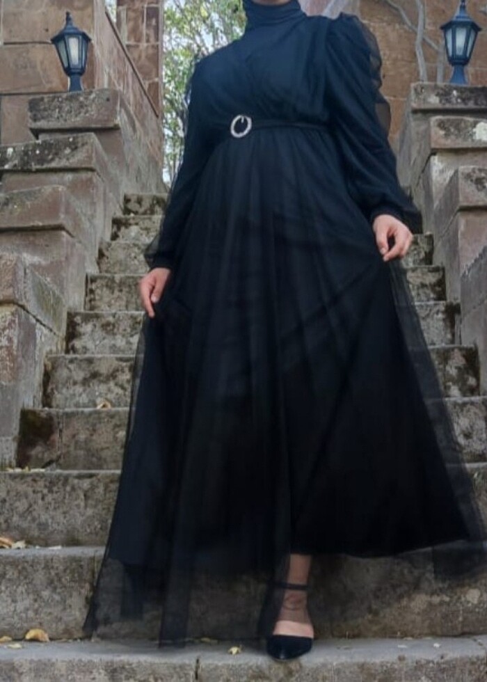 Tüllü tesettür abiye