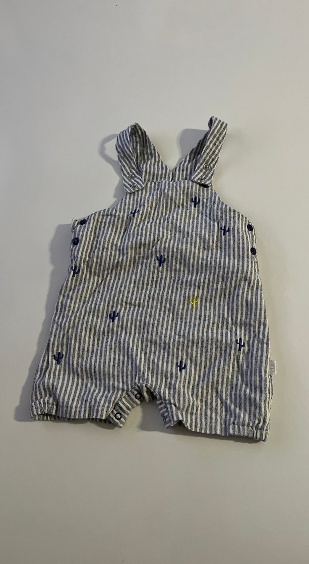 Üründe herhangi bir sorun yoktur 1 yaş için uygundur Gri renkli, nakışlı detaylara ve düğmeli kapamalara sahip, bol kesim erkek bebek askılı tulum. Street wear tarzında.