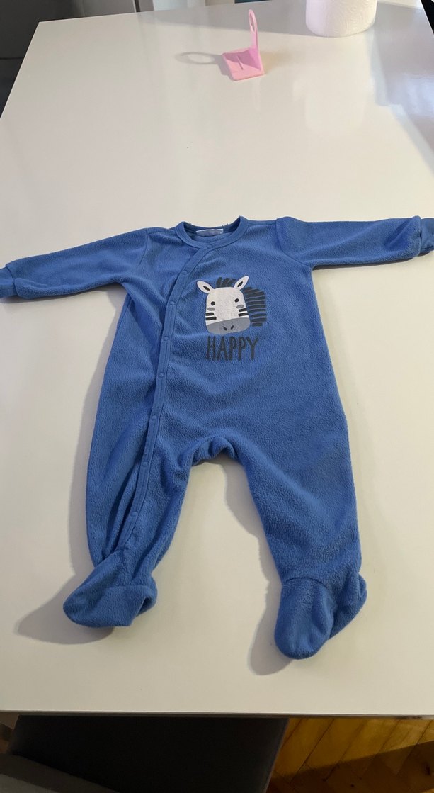 Üründe herhangi bir sorun yoktur 6-12 ay için uygundur Mavi renkli, uzun kollu ve yüksek yakalı bebek tulumu, yumuşak örme dokusuyla dikkat çeker. Üzerinde renkli zebra ve 'HAPPY' yazısı bulunur
