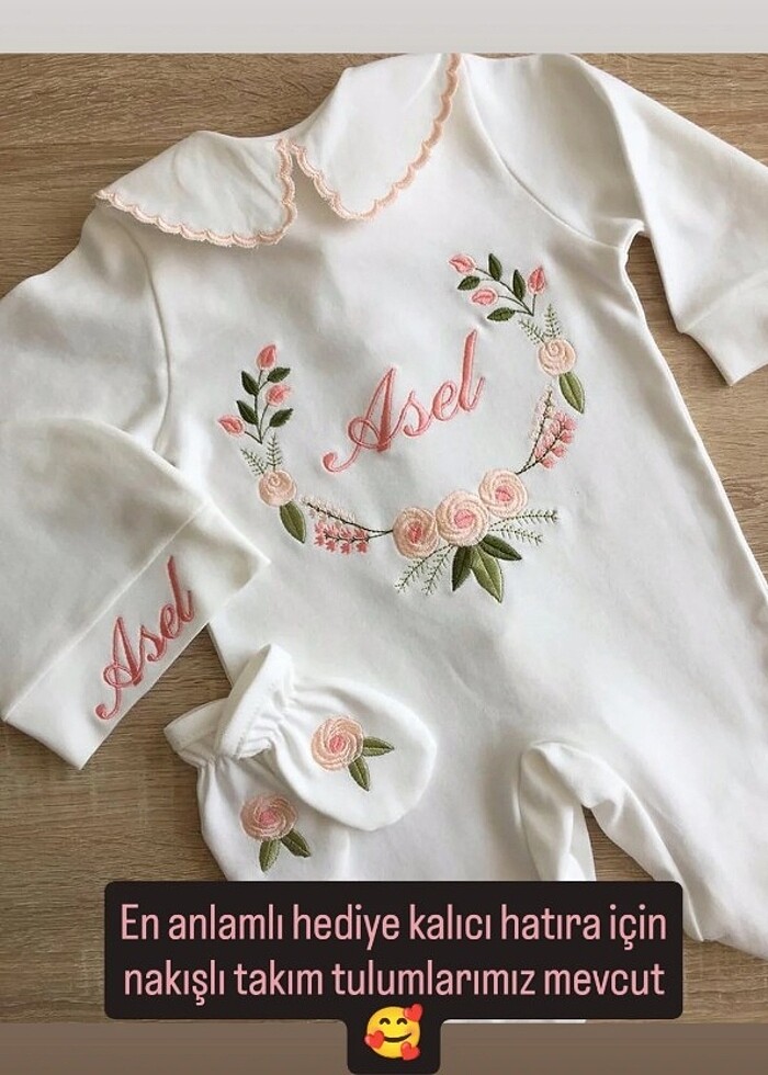 Tulum bebek giyim nakışlı hastane çıkışı 3lü takım