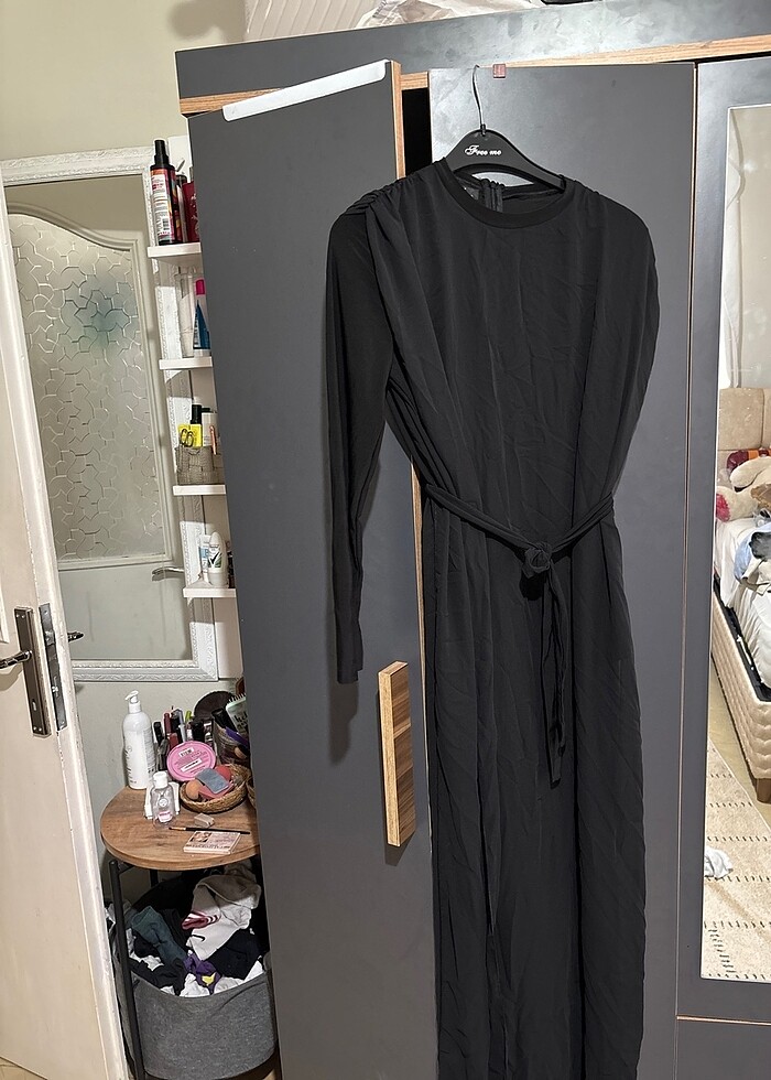 İçi tulum arka ve önünde tül var.siyah şık abiye