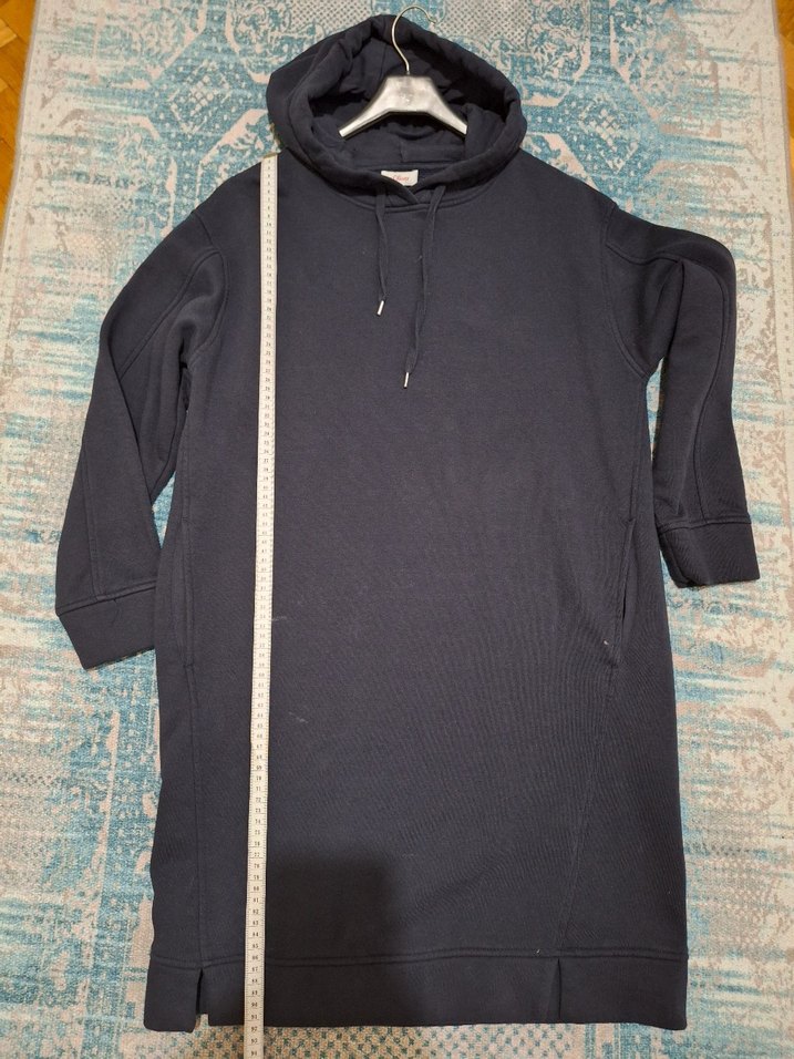 S.oliver marka Lacivert renkli, kapüşonlu yandan cepli, uzun kollu, tulum elbise, Sweatshirt Oversize, S ve M beden için çok idealdir, ikikez kez giyilmiştir, giyildikten sonra yıkanmamıştır. Rahat kesimi ve yumuşak kumaşıyla günlük kullanım için uygundur.