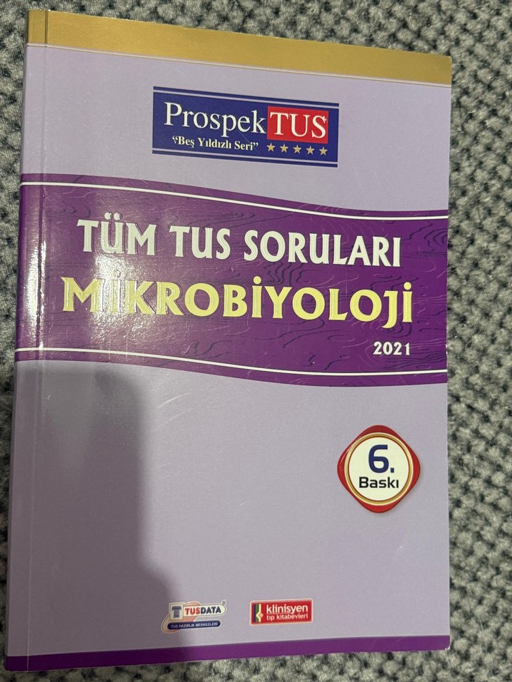ProspekTUS kitabı, mikrobiyoloji konularında tüm TUS sorularını içerir. 6. baskıdır. 2. görseldeki gibi şıklar işaretlenmeden karalama yapılmıştır