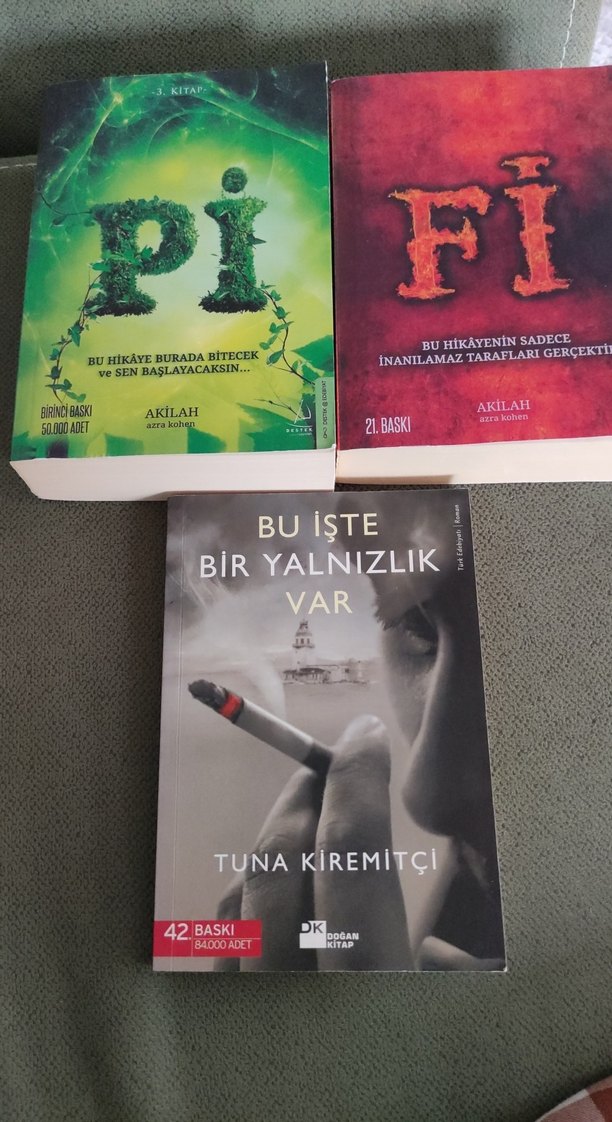 Tuna Kiremitçi ve Akilah'ın 'Bir Yalnızlık Var', 'Fi' ve 'Pi' romanlarından oluşan üçlü kitap seti. Her kitap farklı kapak ve hikayeye sahip.