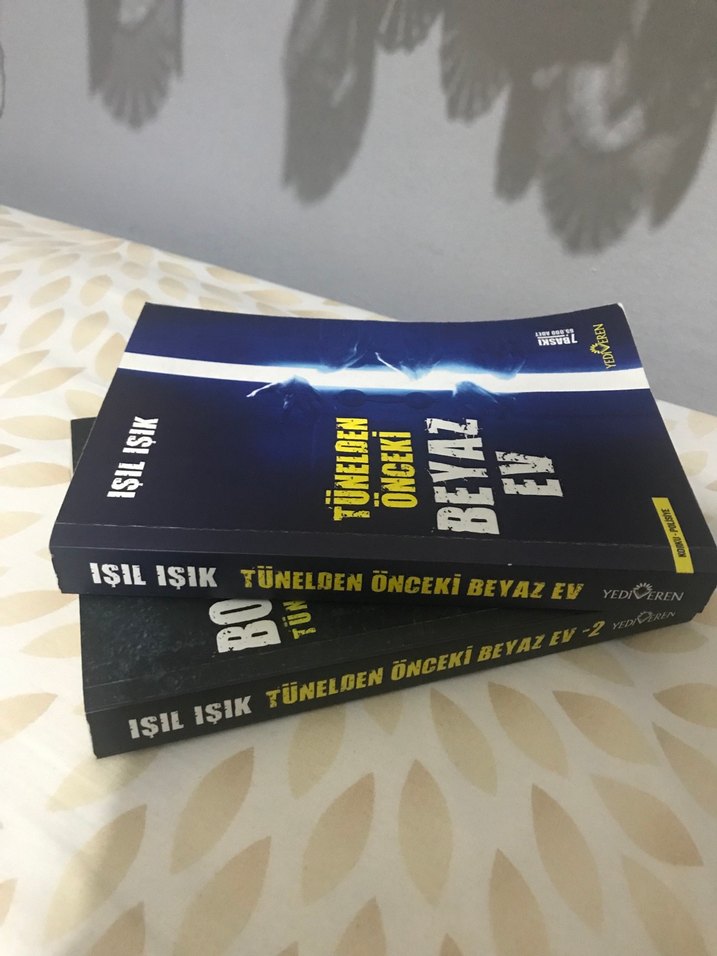 Işıl Işık'ın 'Tünelden Önceki Beyaz Ev' adlı romanının iki adet kopyası, koyu kapak ve sarı-beyaz yazıyla görülüyor. Tek tek alırsanız 180 TL İKİNCİ GÖRSELDEKİ KİTAP İKİSİNİ ALANA HEDİYE Altı çizili yer yok