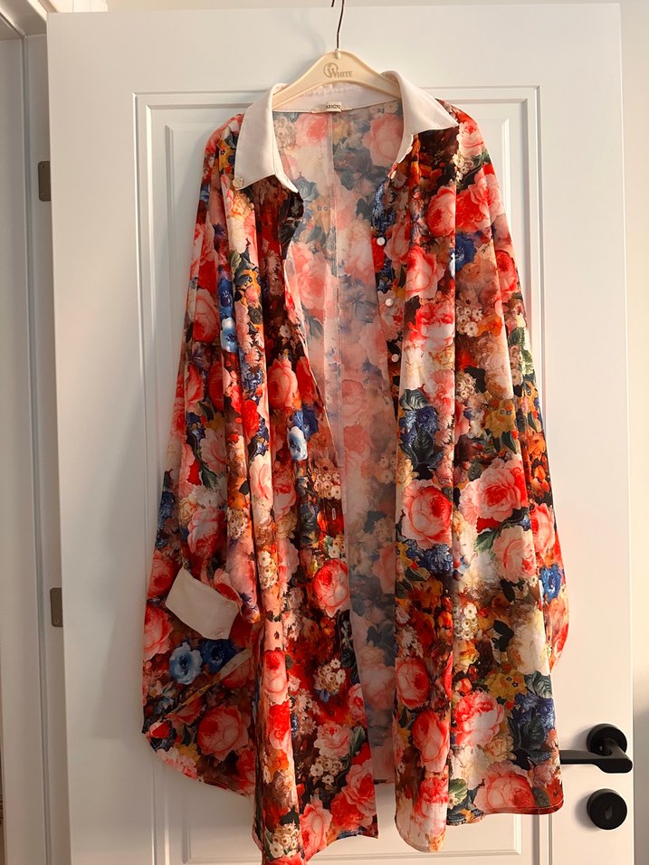 Ceket, tunik, kemerle kombinlersen elbise… gömlek kumaşı gibi değil kumaşı yumuşak biraz esnek ve rengarenk. İçine bir body ile giymenizi tavsiye ederim çünkü kollarınızı en yukarı kaldırdığınızda içiniz görünebilir. Fotoğraftaki gibidir hiçbir kusuru yoktur.
