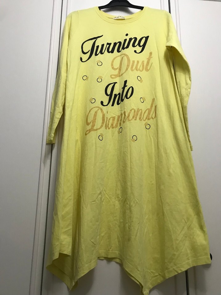 Sarı renkte, uzun kollu, bol kesim pamuklu hamile elbisesi olarakta kullanır. Temizdir