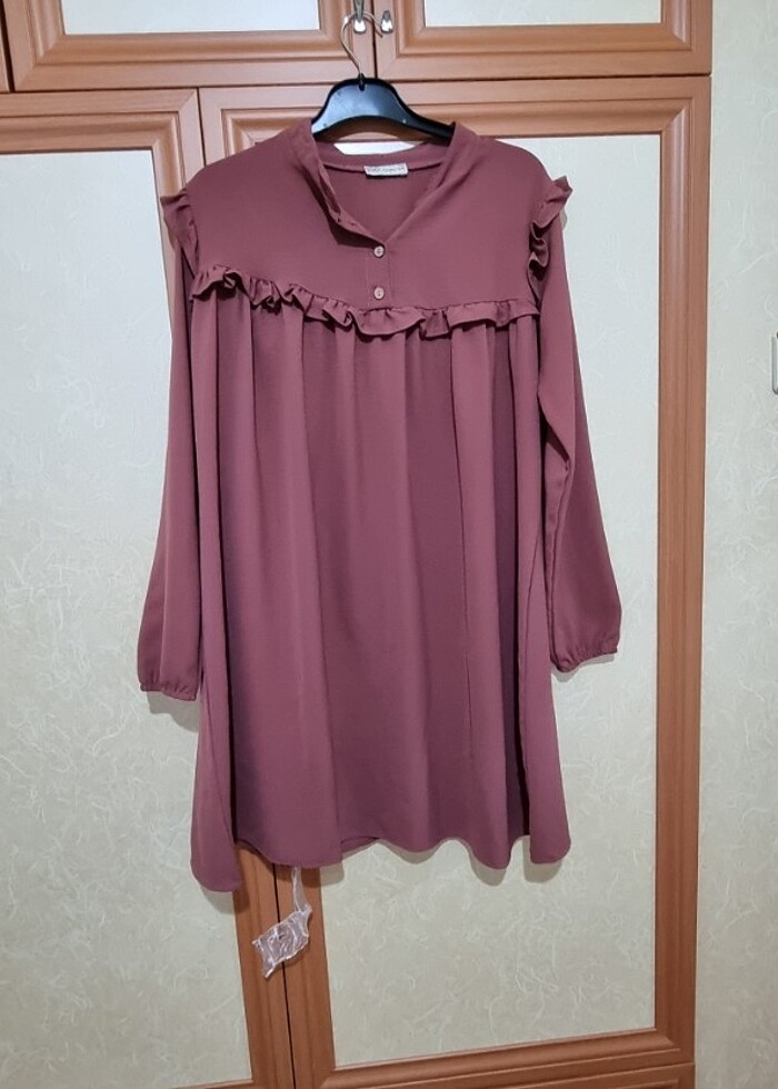 Serin tutan diz üstü tunik gül kurusu renginde