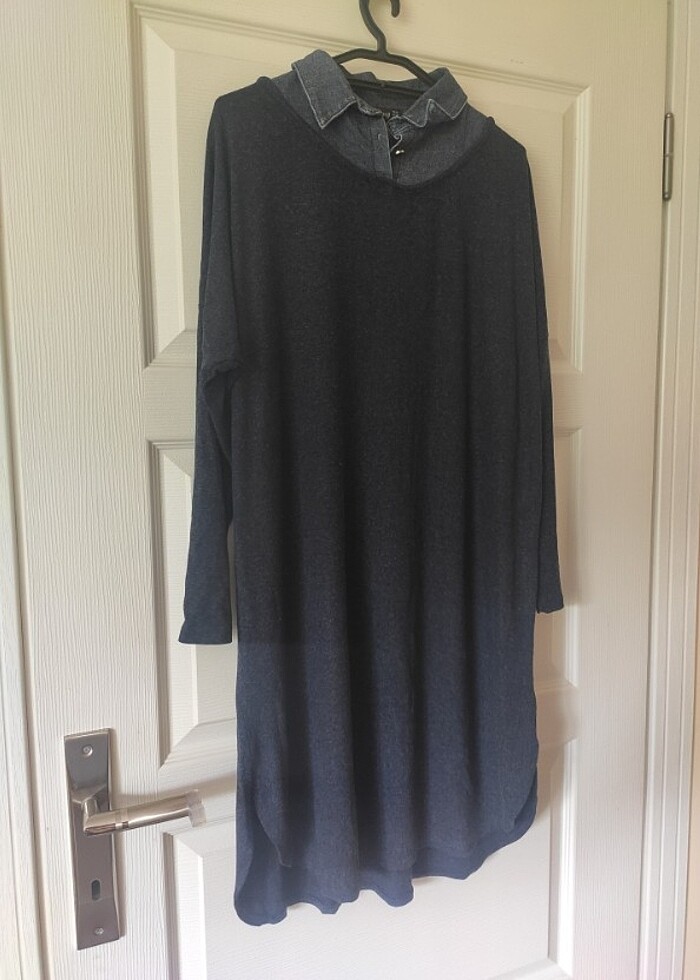 Penye rahat salaş tunik kot yakalı çok rahat 87 cm uzunluğunda