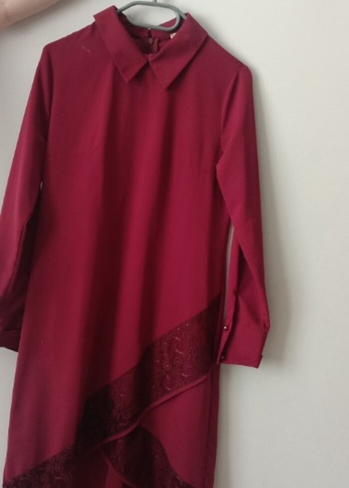 Kırmızı tunik. Fotoğrafta görünen fondöten lekesi var. 2 kere giyildi.