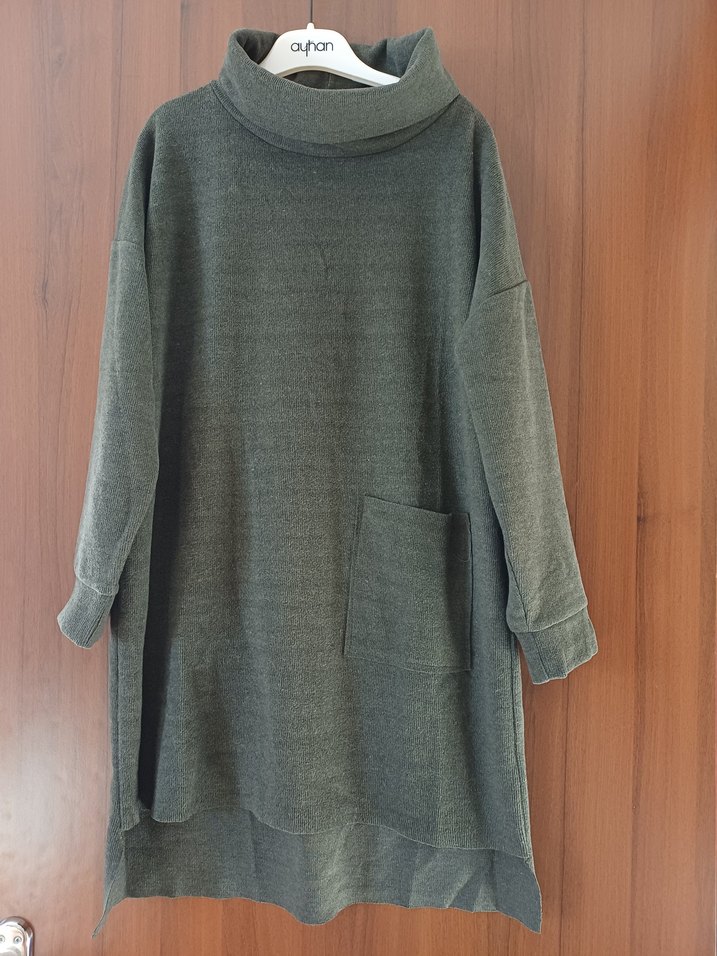 Bordo renkli, yüksek yakalı ve uzun kollu tunik. Bol kesimi ve uzun boyu ile rahat ve şık bir seçenek sunar.Etiketsiz sıfır ürün