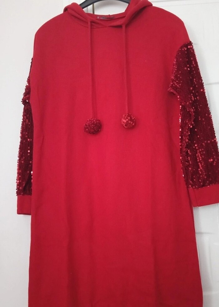 Kadife kolları pul detaylı kışlık tunik