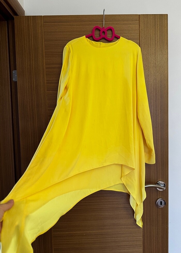 Tiril tiril kumaşı ile çok rahat edeceğiniz iç göstermez çift katlı asimetrik bir kesime sahip tarz bir tunik