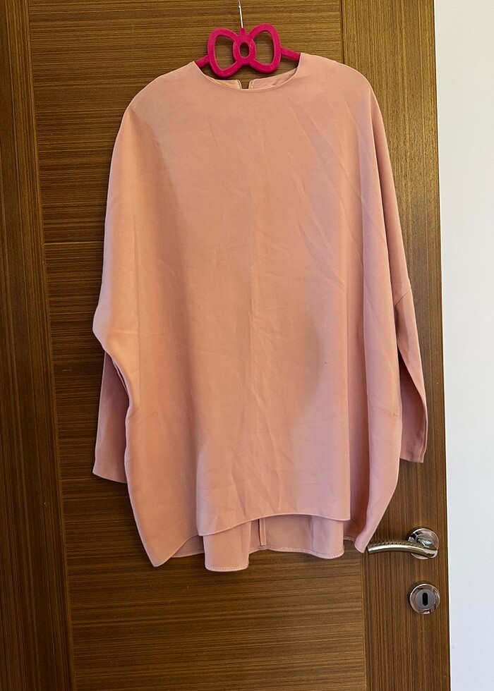 Pudra pembesi renginde ipek kumaş tunik arkası uzun