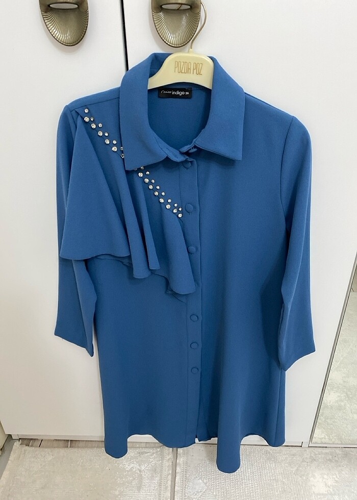 Ürün tunik takımdır 36 bedendir indigo rengidir krep kumaştır kırışma yapmaz temizdir az kullanıldı pantolon dahildir
