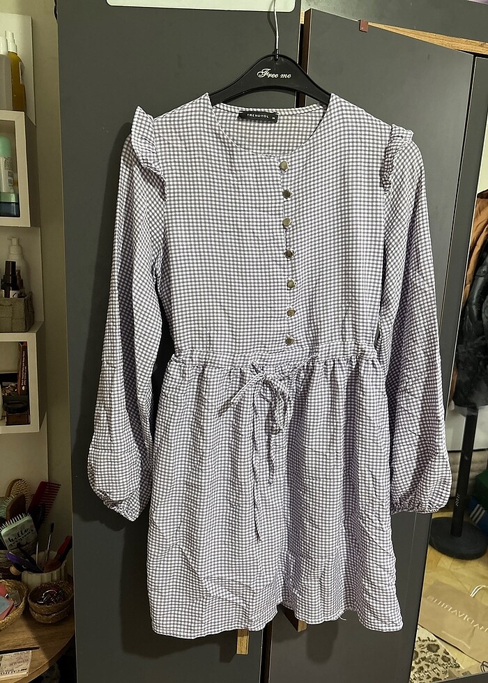 Ürün yeni durumda, kullanılmamış gibi duruyor. Modeli çok tatlı duruyor, rengi de öyle. Yaz için çok ince güzel bir kumaşı var. Bu hafta satılmazsa hepsini kaldıracağım ne yazık ki artık dolabımda yer yok.