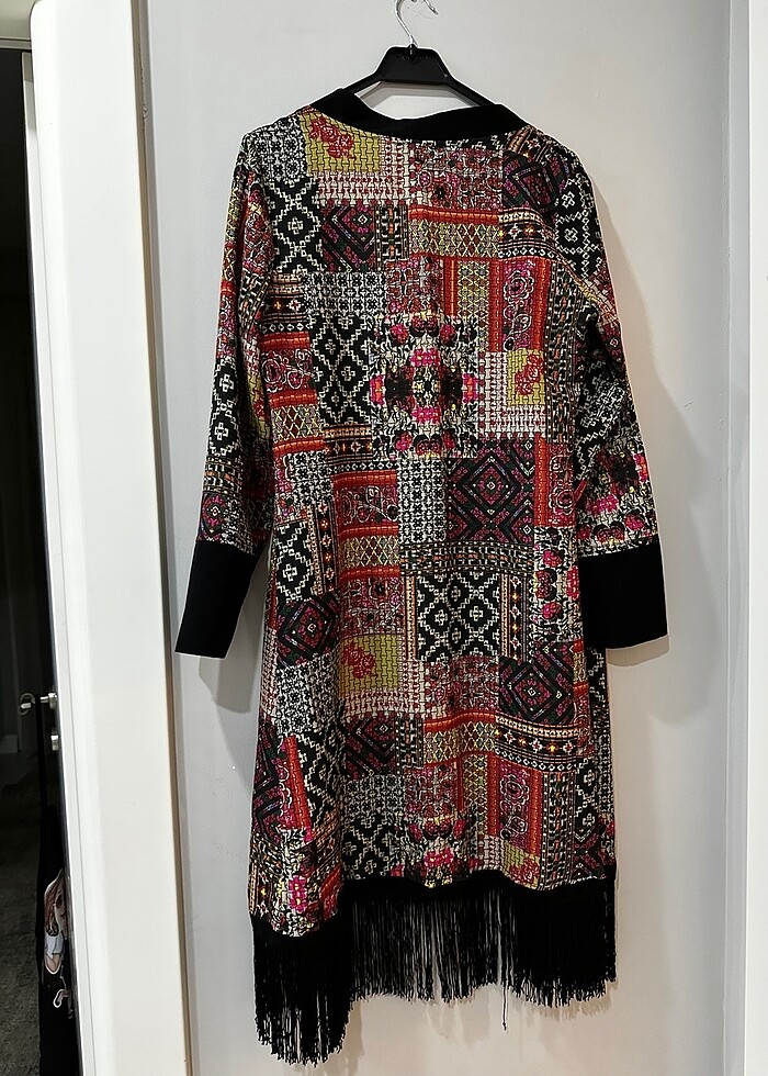 Etnik desenli kumaş eteği püsküllü tunik. L-XL uyumlu. Çok iyi durumda❤️