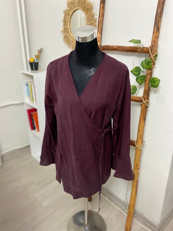 Çapraz bağlamalı kolları volanlı tunik az kullanıldı 38 beden uyumlu