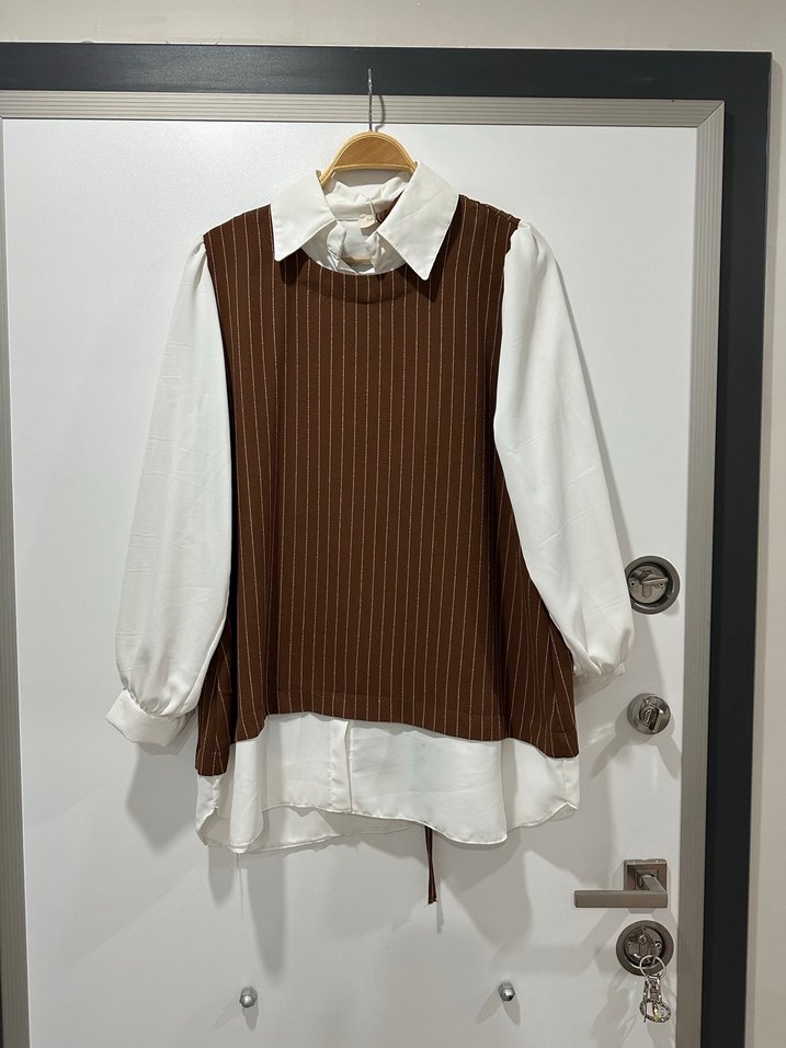 Yeni etiketli üründür çizgili tunik iç gömleği yapışıktır çok kaliteli kumaşa sahip 38 bedendir 40 bedene kadar rahat oluyor kalıbı boldur tek kalmıştır