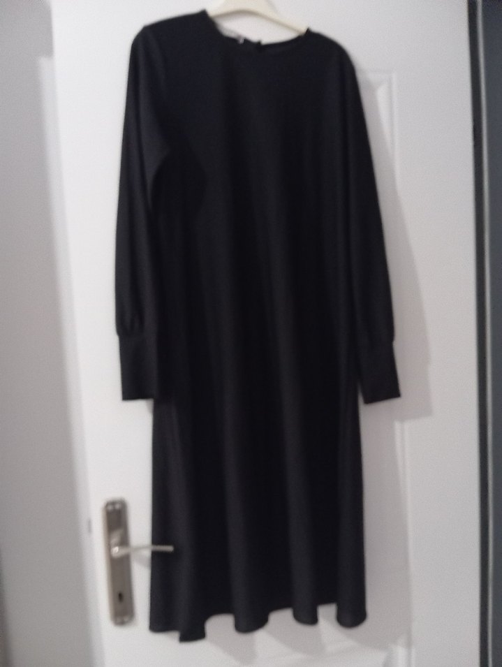 Siyah renkte, uzun kollu ve salaş kesimli, yuvarlak yaka kadın tunik elbise marka temsili 42 beden dizi bir karış geciyo