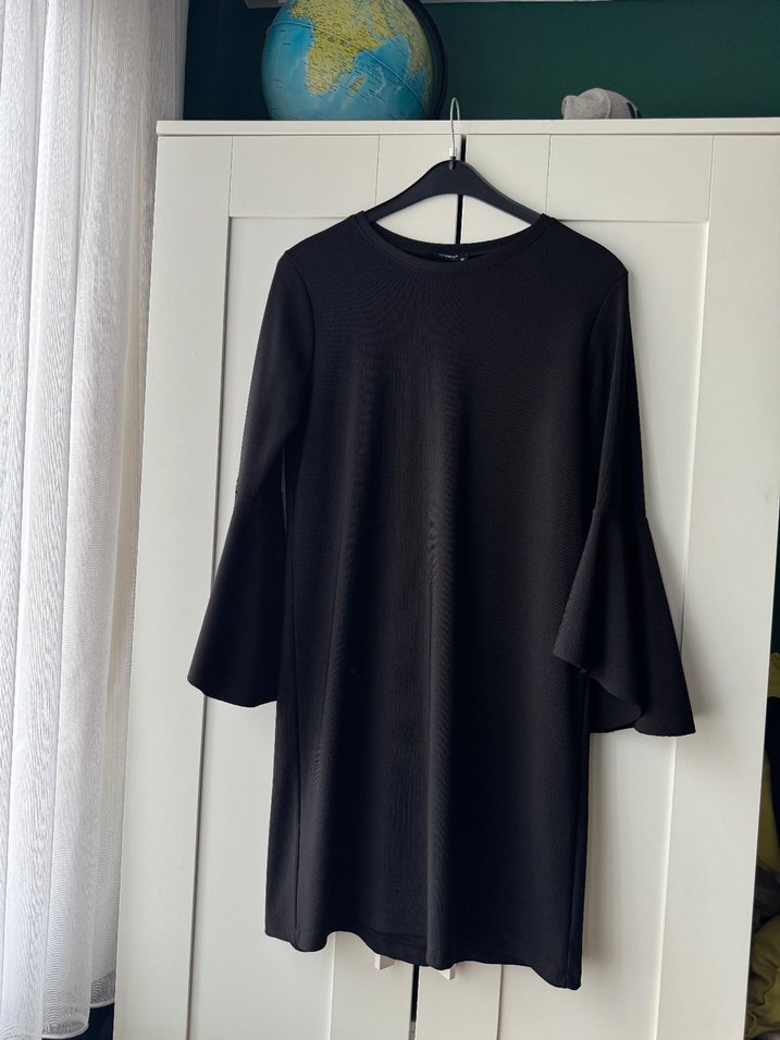 Siyah renkli, yuvarlak yakalı, uzun ve drapeli kollara sahip, bol kesim Tunik Elbise. hafif esnek çok güzel bir kumaşı var, günlük kullanıma uygundur. üstü çok şık duruyor ve zayıf gösteriyor ister elbise olarak isterseniz tunik olarak kullanılabilir